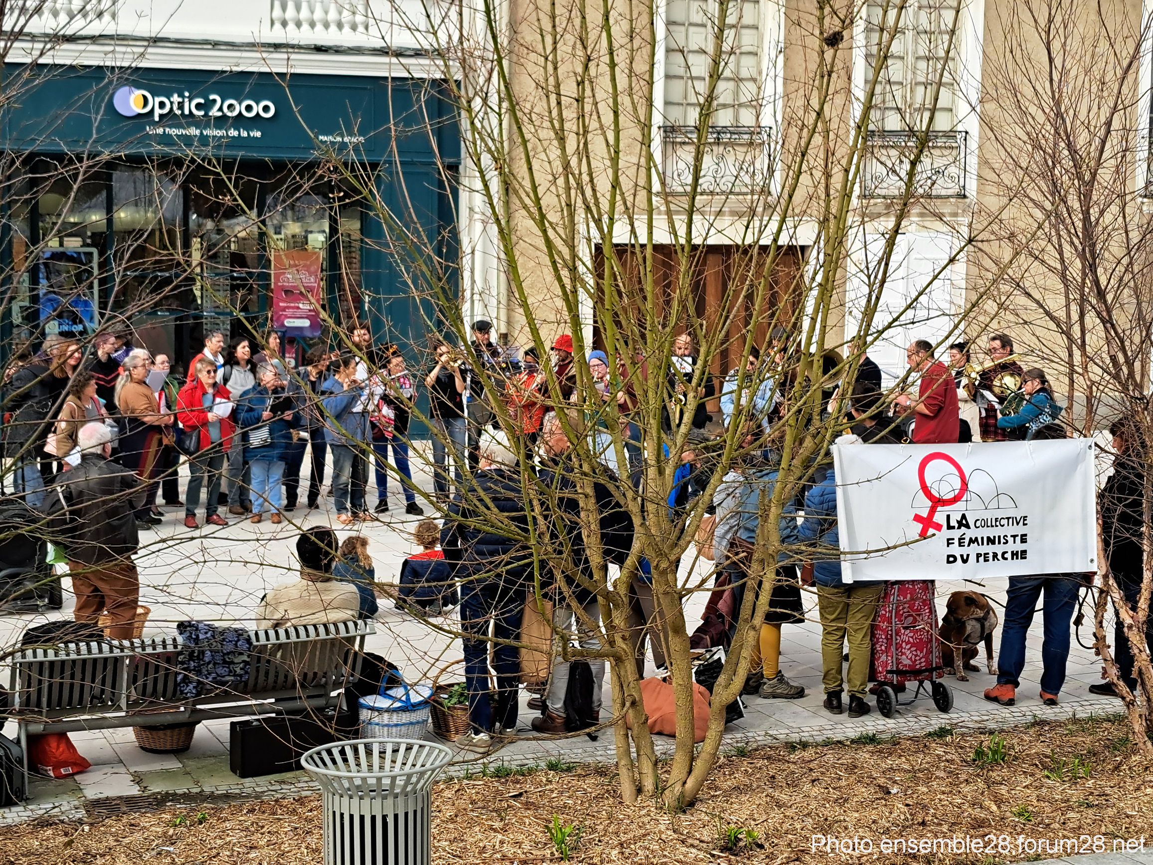 À Nogent-le-Rotrou, depuis plu­sieurs années, les actions fémi­nistes sont une tra­di­tion. Samedi 7 mars à 11 h., l’association La Collective fémi­niste du Perche a ouvert le ras­sem­ble­ment de la place Saint-Pol qui a réuni la Fanfare invi­sible du Perche et trois chœurs et cho­rale, devant le mar­ché hebdomadaire.